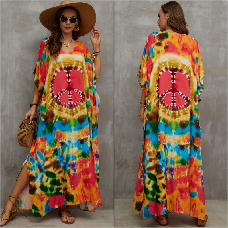 - Unique Design: Featuring an elegant Bohemian prints, a V-neck with handcrafted detailing, batwing sleeves and a loose waist, Side slits and a wide hem design. The flowing kaftan is designed to provide plenty of coverage and protection for you and while maintaining a light and airy feel.