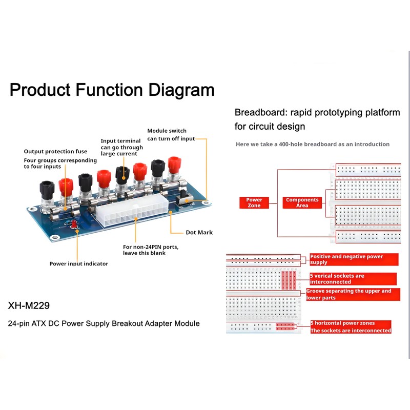 • XH-M229 24-pin ATX DC Power Supply Breakout Adapter Module