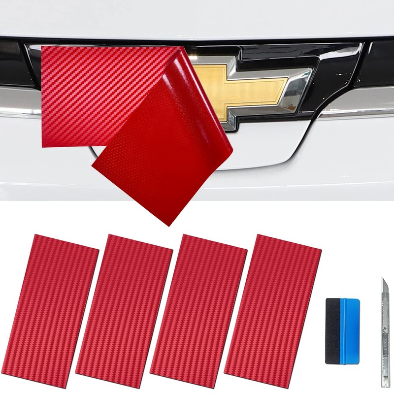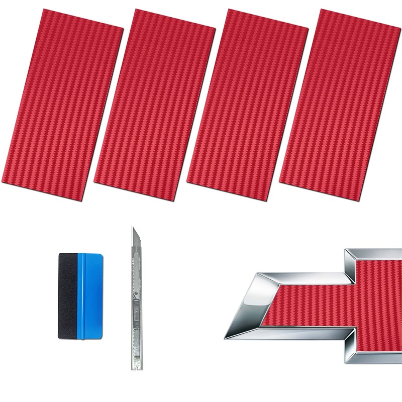 LZLRUN LZLRUN Compatible with Bowtie Logo Wrap Stickers Cut-Your-Own Emblem Overlay DIY Decals for Chevy (11.8 Inch x 4 Inch) (Red Carbon Fiber)