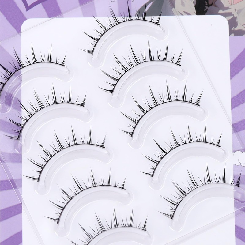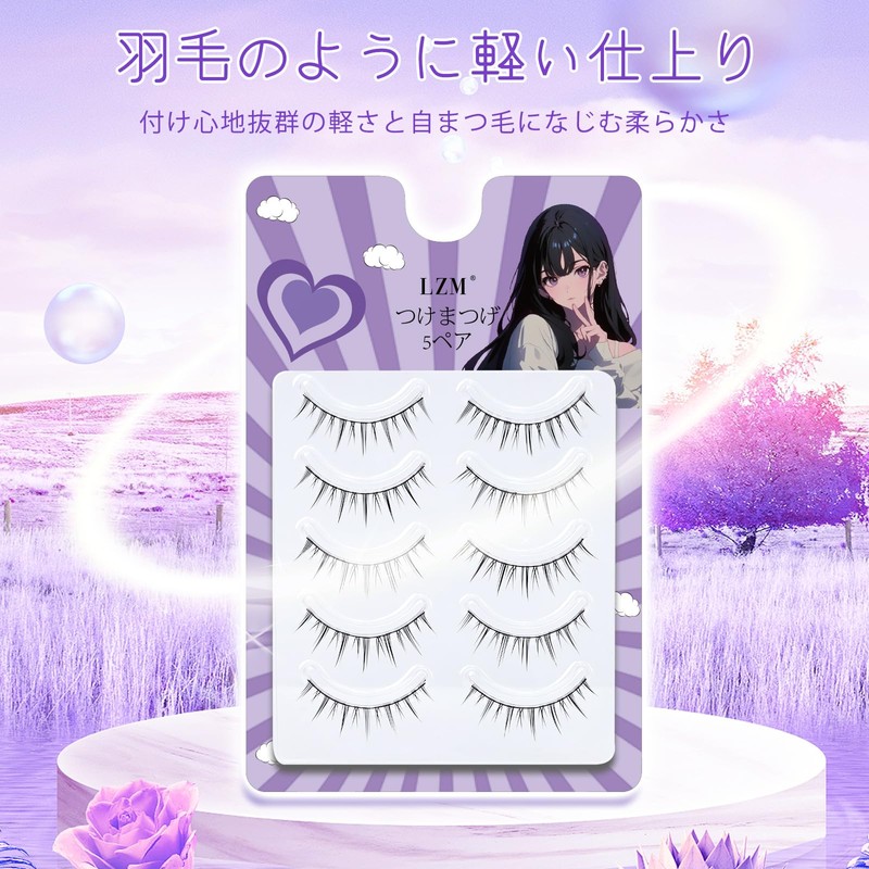 LZM False Eyelashes, Natural Bunch, False Eyelashes, 100% Handmade False Eyelashes, Lightweight, Black Natural Axis, Soft Fiber, DIY, Reusable, 5 Pairs