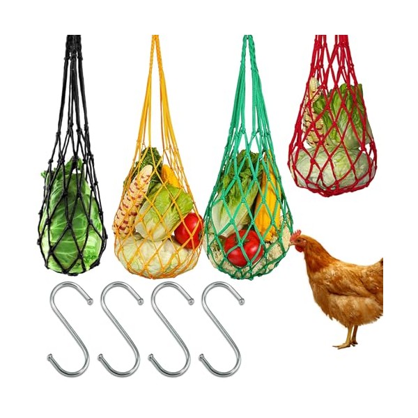 LZPLJLWS Chicken Coop Accessories 4 Pack Hanging Chicken Feeder with Feeder Net 57 cm Heavy Duty Reusable Interactive Toy for Chickens and Poultry