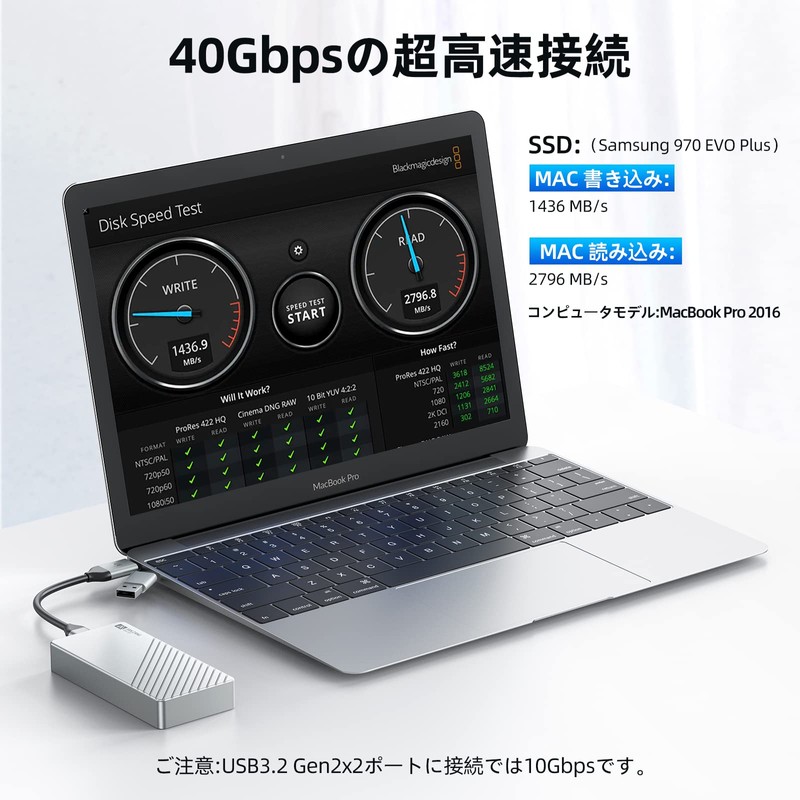 - [Ultra Fast 40Gbps] NVMe M.2 SSD external case that uses the latest USB 4.0 standard! Offers 40Gbps ultra-fast transmissions that are 4x faster than the USB 3.1 standard (10Gbps). Test Read: 2700MB/s, Write: 1400MB/s Introducing the NVMe M.2 SSD case that uses the latest USB 4.0 standard! Test Read: 2700MB/s, Write: 1400MB/s Note: To ensure the best reading and writing speed, please connect your computer to your hard disk using USB 4.0 interface or Thunderbolt 3/4 interface. When using the USB3.2 Gen2x2 interface, the speed can only reach 10GBPS