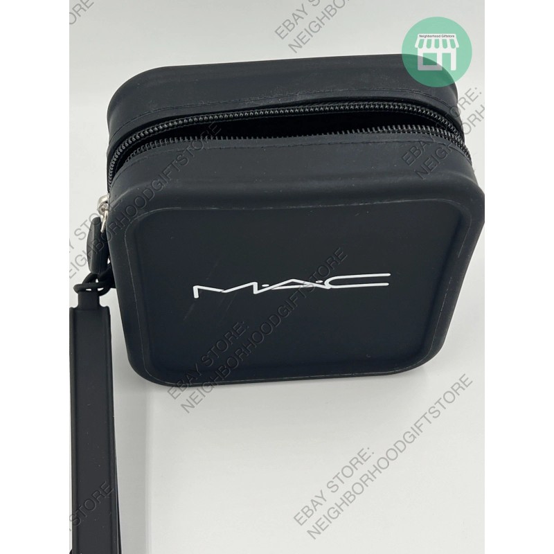 M·A·C MAC Cosmetic Black/Black Makeup Rubber Cosmetic Pouch Case 5"x5"x2" NE...