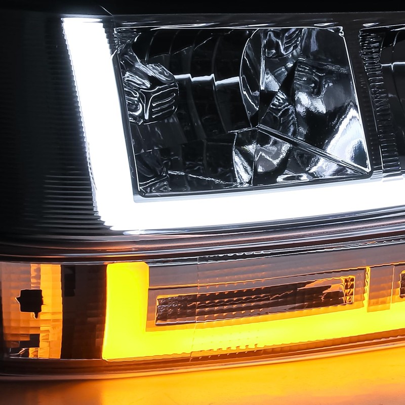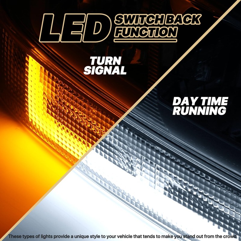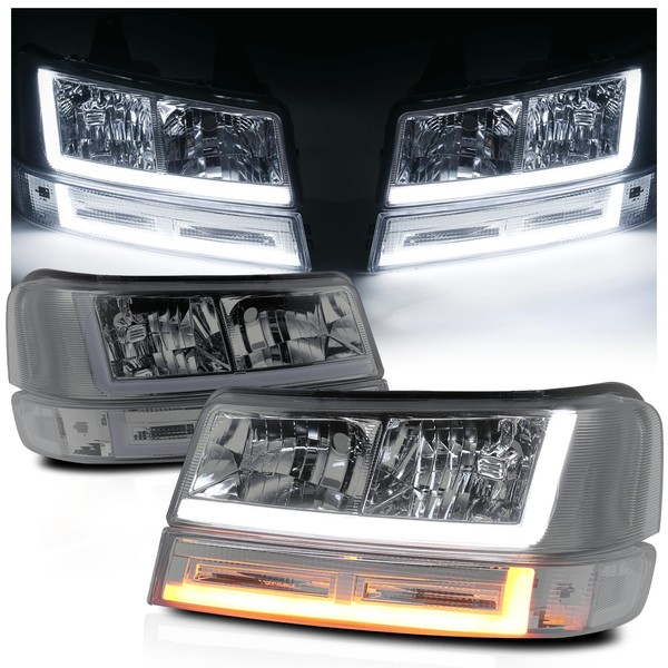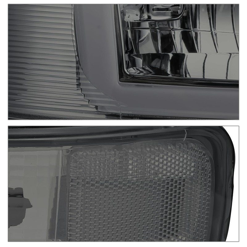 M-AUTO OE Style Headlamps Assembly Compatible with 2003-2023 Express, 4PC Smoke Headlight & Bumper Signal with Switchback LED Strip DRL