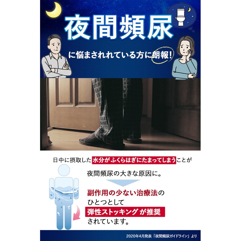 • 強すぎない着圧で筋肉をサポートし、リンパの流れや血流を促進。むくみや血栓を予防し、脚への負担を徹底的にケア。夜間頻尿対策、旅行の長時間移動や災害時のエコノミークラス症候群、下肢静脈瘤の予防にもおすすめ。