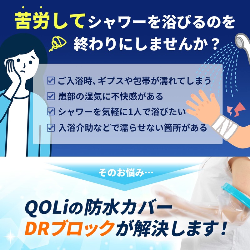 - ✅何度も使える ギプス・包帯 防水カバー ✅【快適素材で簡単装着、毎日の入浴に♪】QOLiのギプスカバーは理学療法士監修の元、様々な状況や体格を想定して商品開発をいたしました。お悩みの方は一度お試しいただき、日常生活をストレスなく、お楽しみいただければと思います。
