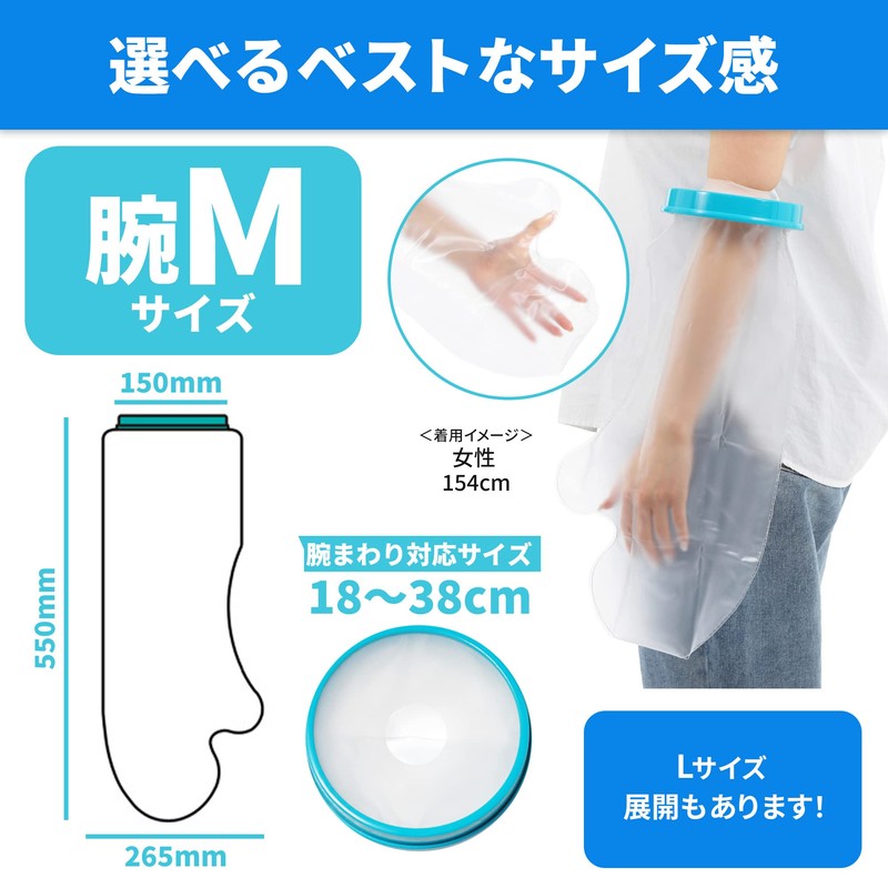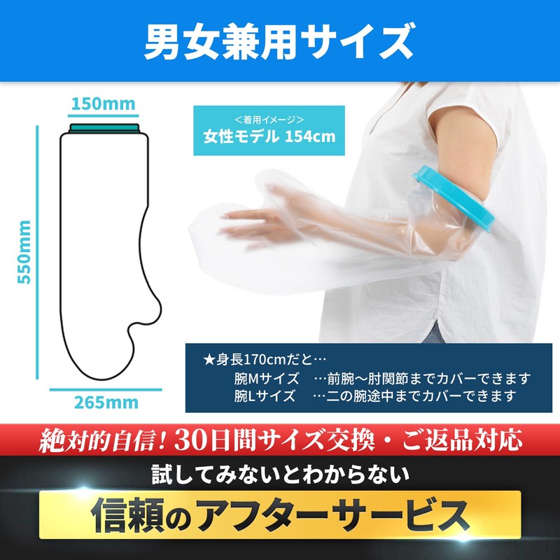 【理学療法士監修】 ギプスカバー 包帯 シャワー 入浴 簡単着用 介護 【毎日使える】 (大人の腕用Mサイズ(55cm))
