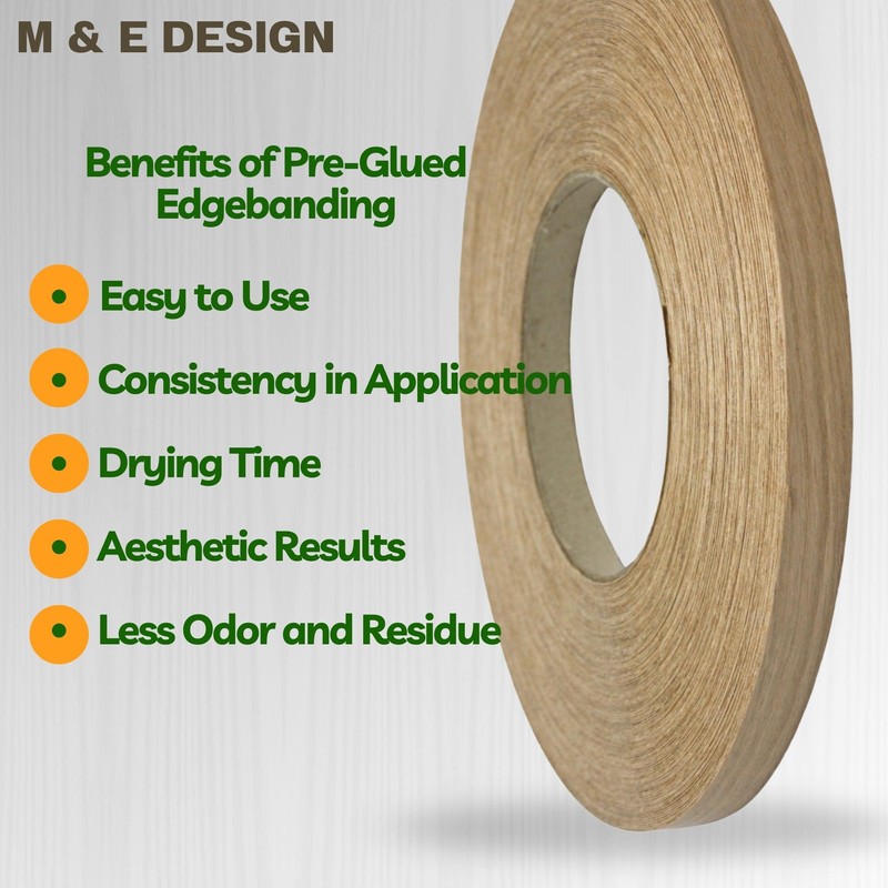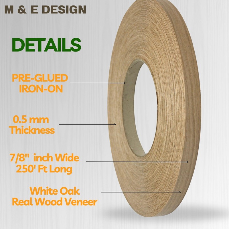 M & E Design Pre-Glued Veneer White Oak 7/8" x 250' Roll - Easy Application Iron-On Edge Banding for Furniture Restoration