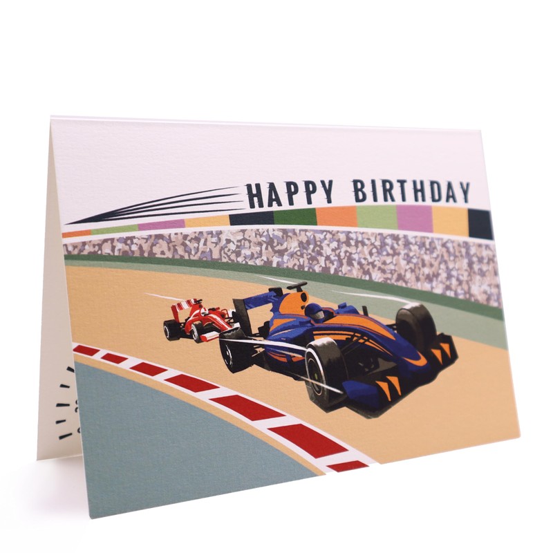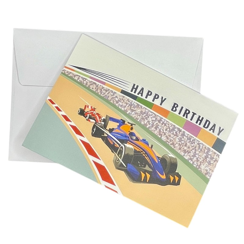 - F1-STYLE RACING CAR BIRTHDAY CARD – A bold, high-energy design from our Stadium Sports Collection, perfect for Formula 1 fans, car enthusiasts, and speed lovers.