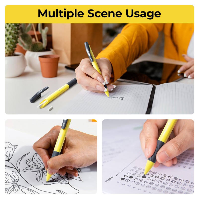 - 【Comfortable and Non-slip Grip】The automatic pencil has a rubber grip, which is very soft, giving you a comfortable and non-slip grip, reducing writing fatigue. The clip design is easy to carry and can be clipped in pockets, books, notebook covers.