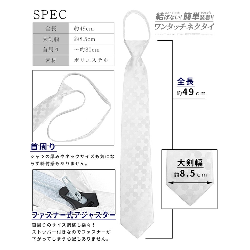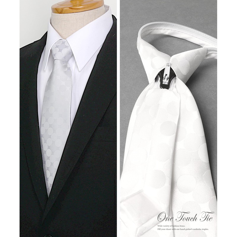 - (White Necktie with 5 Seconds) Easy to put on and take off with you without having to tie) A one-touch zip necktie that is easy to put on and take off. Even adults who don't like wearing a tie can simply unlock the zipper, unlock the loop, hang it over the neck and pull the zipper. Easy with Zipper: When fastening the tie, the zipper makes it easy to tighten