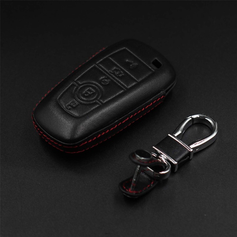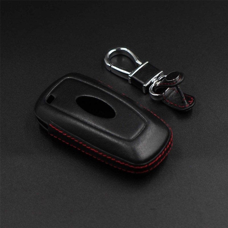 M.JVisun Men Women Genuine Leather Key Fob Cover For Ford Bronco Ecosport Escape Expedition Explorer F150 F250 F350 F450 F550 Fusion Maverick Mondeo Mustang Ranger Car Key Case With Keychain - Black