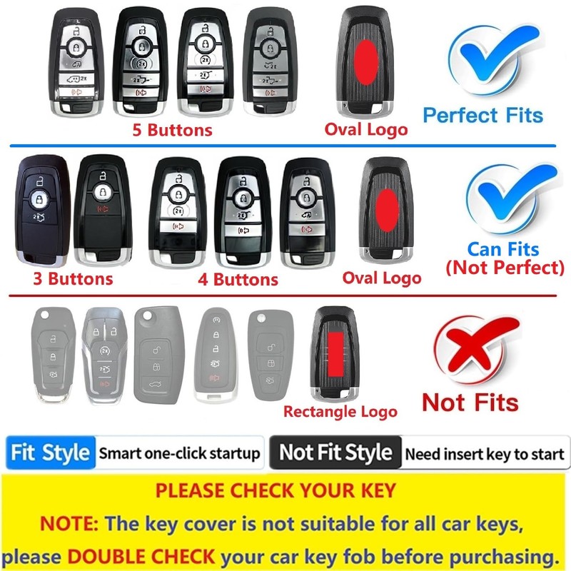 - PLEASE NOTE: Even if the type of the car is the same, the car key might be different based on the different year of manufacturing. So make sure to follow the SECOND GALLERY IMAGE details when placing order CERTAINLY. These covers only fit for Ford ENGINE START STOP SYSTEM Smart Keyless entry remote key. Just the cover, key fob is NOT included.