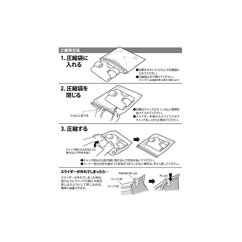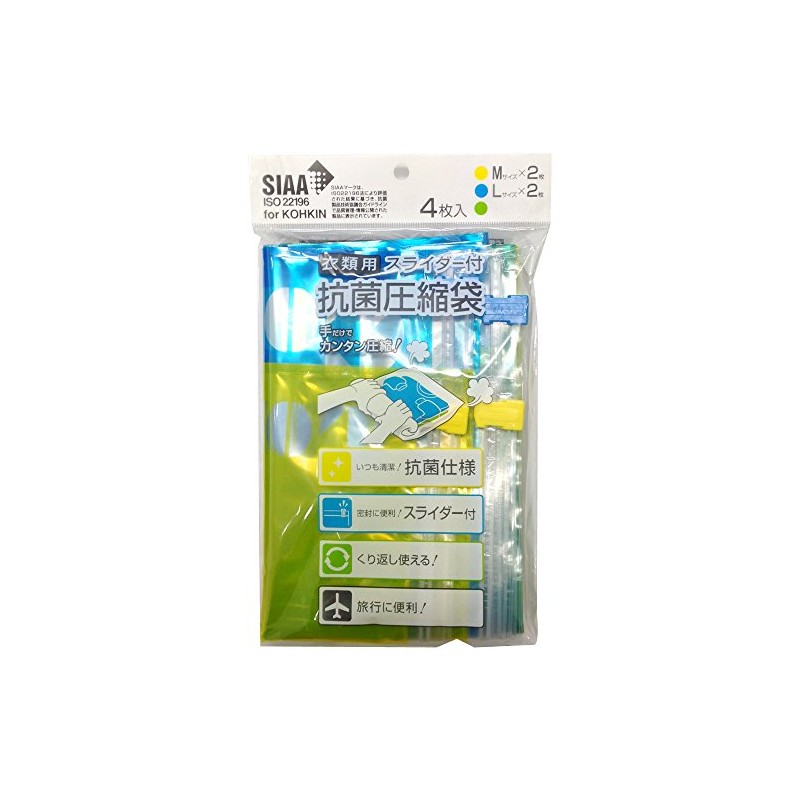 衣類用スライダー付 抗菌圧縮袋 Mサイズ/Lサイズ各2枚入り