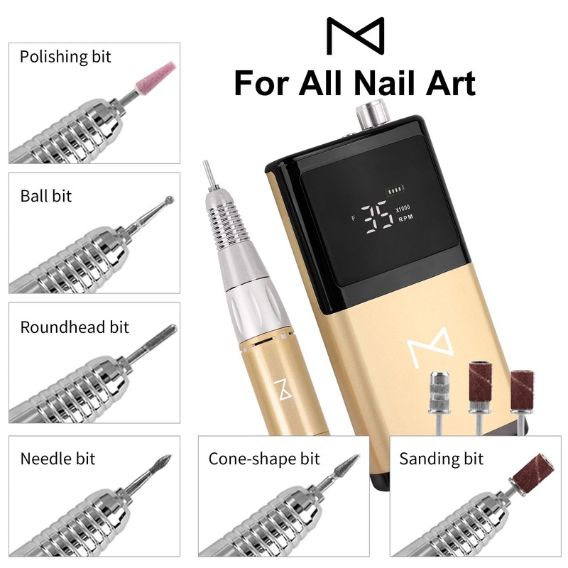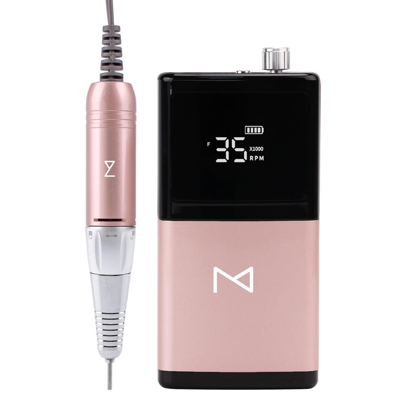M M - E-ZDrill Rechargeable Cordless Nail Drill, 35k RPM, Smart Speed & Battery LCD, Portable Lightweight, Forward/Reverse, Aluminum Metal, Acetone Resistant (Rose Gold)
