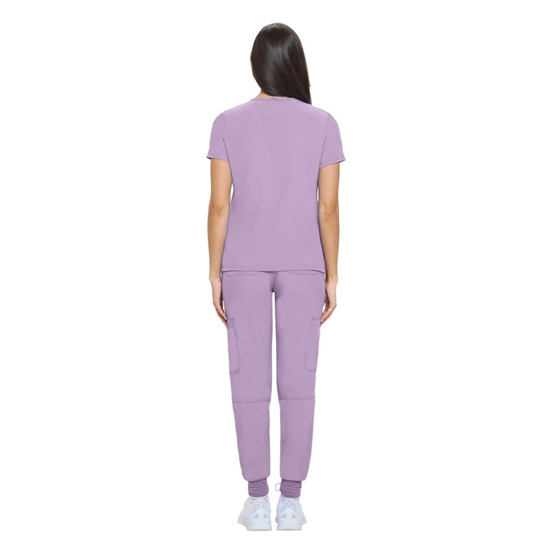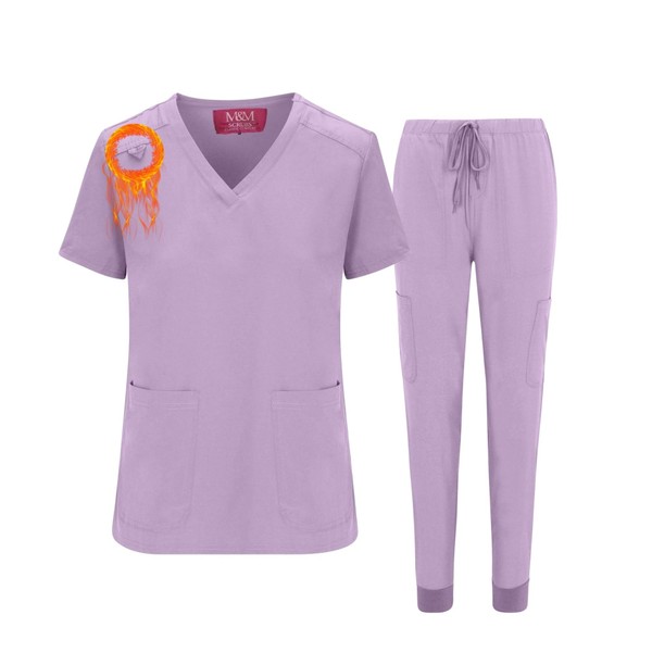 M&M SCRUBS Women's Essential Jogger Scrub Set Nursing Uniform Clearance Cool Stretch Scrub Top and Pant Workwear (Lavender, X-Small-Petite)