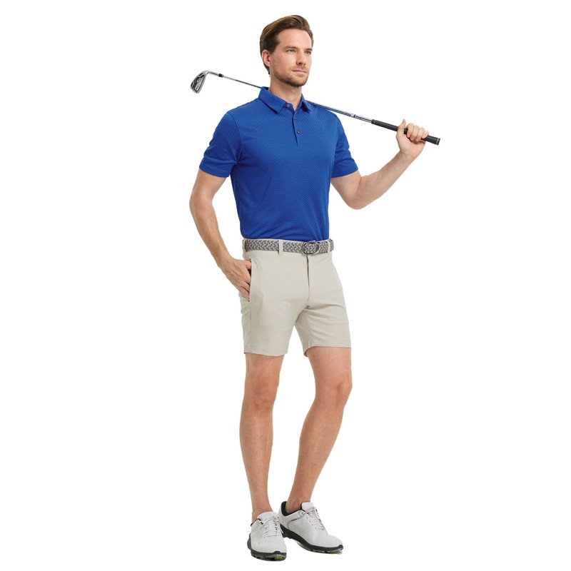 M MAELREG Golf Polo Shirts for Men Quick Dry Fit Performence Lightweight Short Sleeve Jacquard Texture Golf Shirts Cobalt