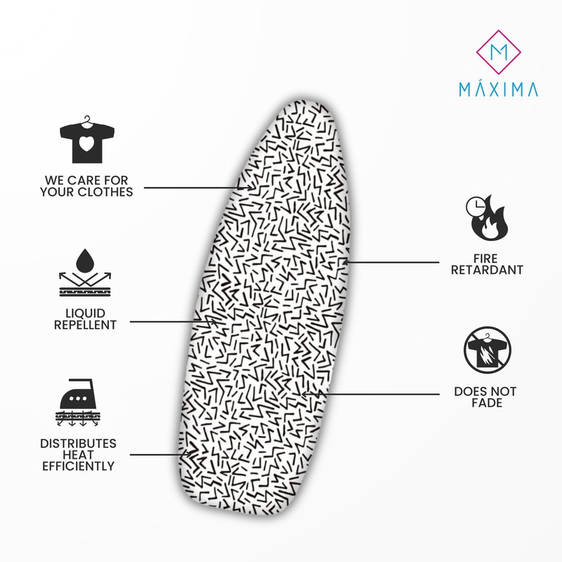 M Maxima, Ironing Board Cover and Pad, Better Quality, Fire-Resistant, Indestructible, Non-Fade Cotton with Teflon Coating, Wide 48x18, Fun