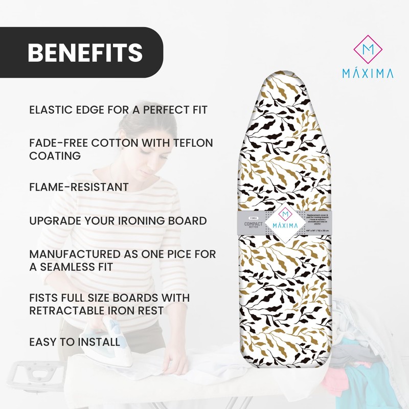 M Maxima, Ironing Board Cover and Pad, Better Quality, Fire-Resistant, Non-Fade Cotton with Teflon Coating, Compact 44x14, Winter