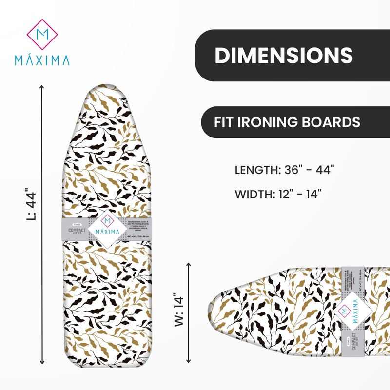 - M Maxima ironing board cover and pad 44x14" – Fits full-size ironing boards with ease. Elastic edge ensures a perfect, secure fit every time.