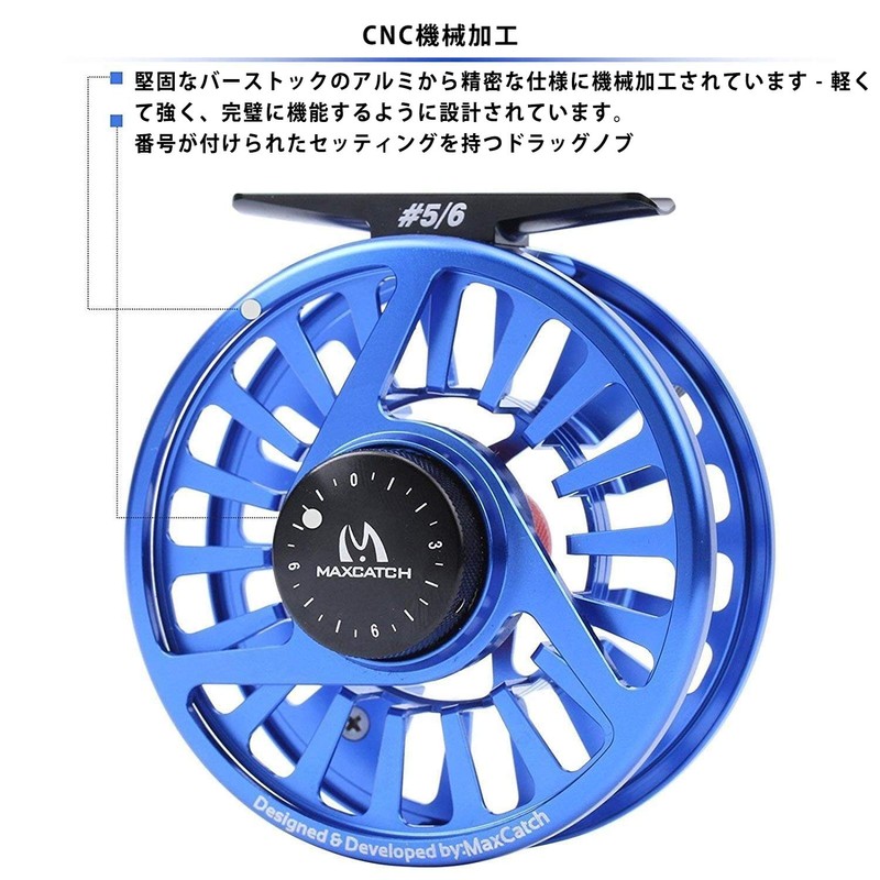 M MAXIMUMCATCH Maxcatch Fly Reel Mid Arbor CNC Machined Aluminum Left and Right Hand Interchangeable Size (1/3 3/4 5/6 7/8 9/10wt) (Blue, 9/10 wt)