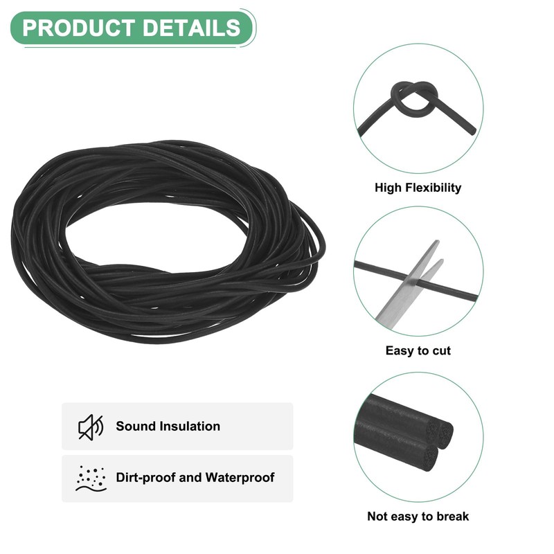 - [Size & Package] - 1-Pack x Weather Stripping Concrete Filler Rope; Material: EPDM; Color: Black; Diameter and length Size: 1/8 inch x 33 feet / 3mm x 10m