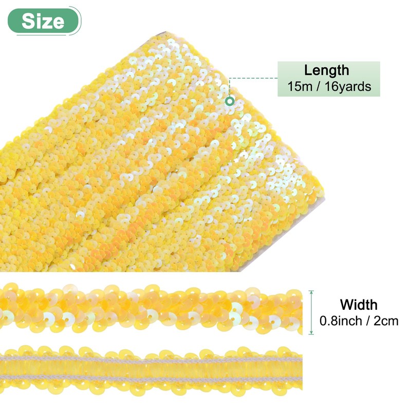 - [Size & Package] - Material: PVC; Color: Yellow; Overall Size: Length:15 m/16 yards x 2 cm/0.8 Inch(L*W); Package Inclue:1 Pack x Flat Sequins String.