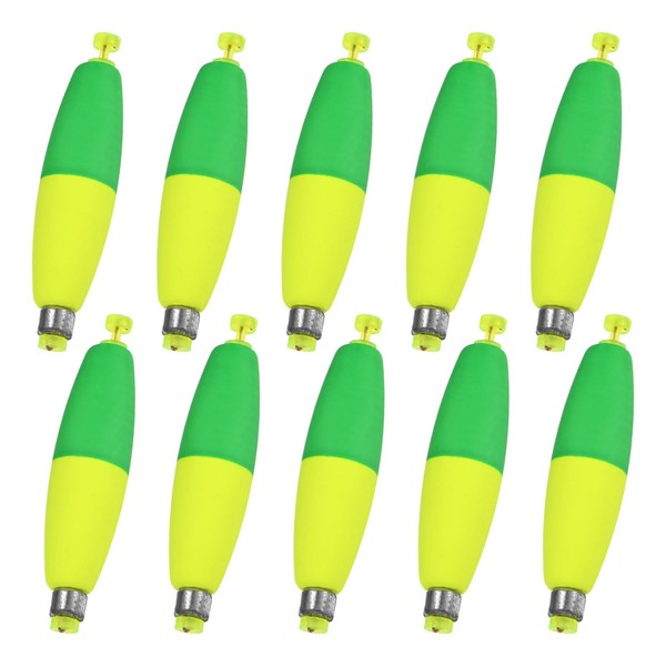 M METERXITY 10-Pack Fishing Bobbers Floats, 96mm EVA Foam Weighted Bobbers for Crappie/Bluegill/Trout Bass/Catfish, Clip-on Floats Slip Corks Floaters Strong Buoys [Green & Yellow]