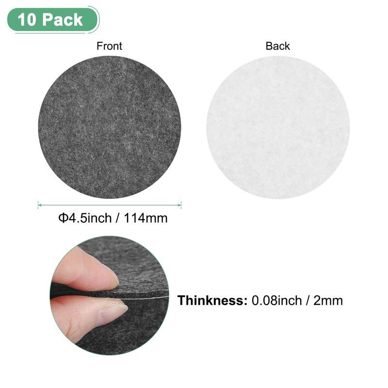 - [Size & Package] - The size of the adhesive backed felt is 4.5 x 0.08 inches/114 x 2mm (Dia x Thick). 10 pcs grey felt is included in the package which can meet your various usage