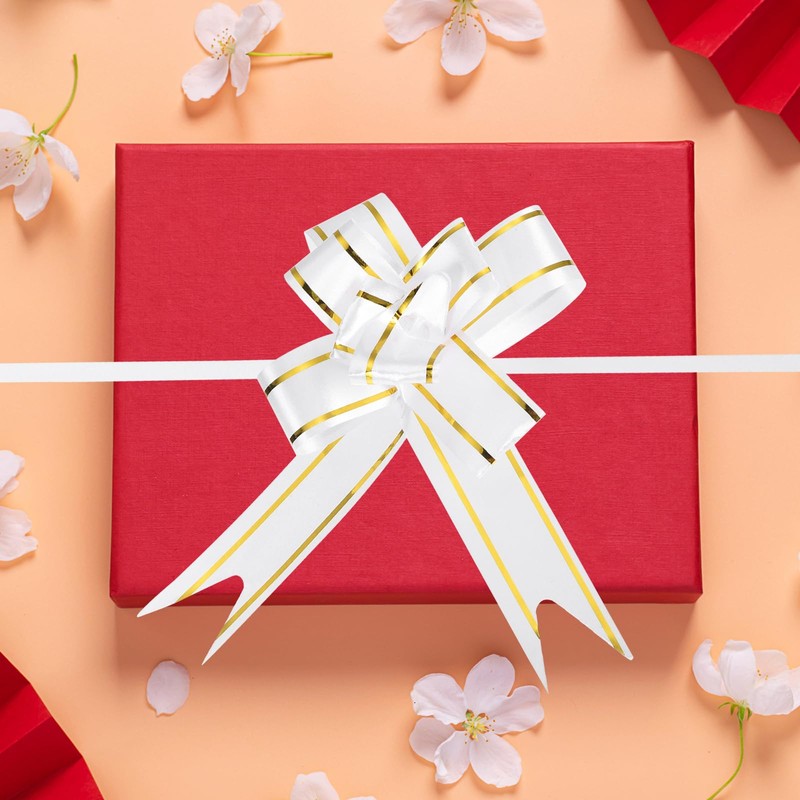 - APPLICATION RANGE: These pull bows are versatile and can be used for various occasions such as weddings, banquets, Christmas, New Year, Valentine's Day, and other festive celebrations. Additionally, they are perfect for decorating birthday gifts, packaging boxes, bouquet gifts, wine bottles, fruit baskets, cars, and more, helping to create a joyful and festive atmosphere.