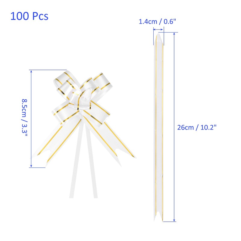 - PACKAGE INCLUDE: 100 Pack of Gift Pull Bows,which size before pulling is 20 x 1.1 cm / 7.9 x 0.4 inch (L*W)