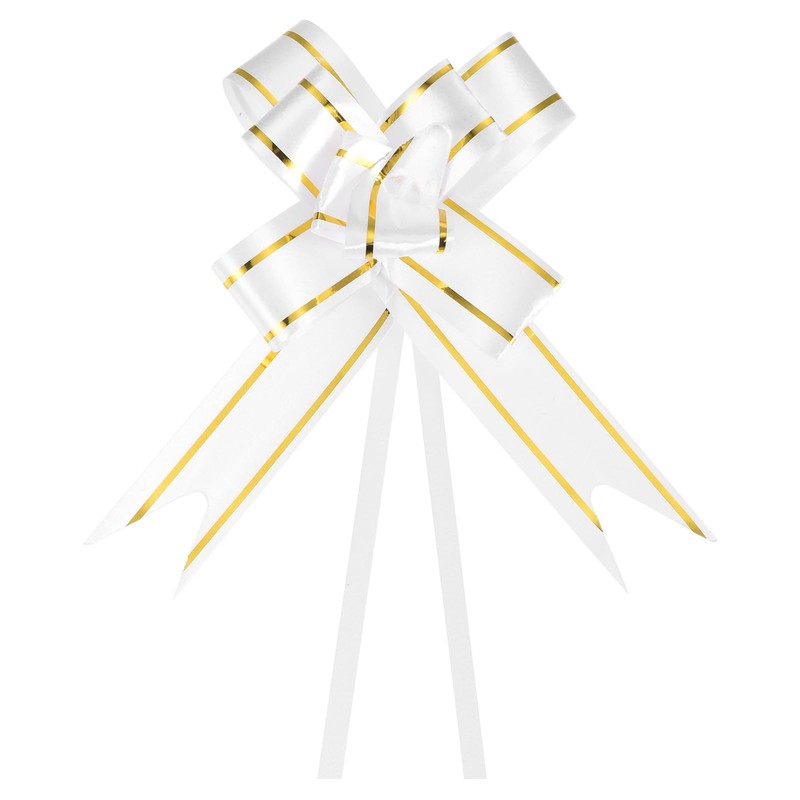 M METERXITY 100 Pack Gift Pull Bows - Basket Gift Wrap Bow Golden Thread Style Christmas Bows Gifts Bow Bulk Apply to Birthday Party (3.3inch White)