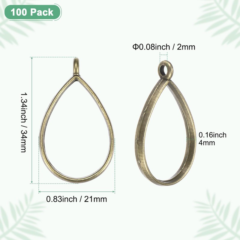 M METERXITY 100-Pack Open Bezels for Resin, Teardrop Shape Open Back Bezel Pendants for Resin Jewelry Making/DIY Earrings Necklace, Alloy Hollow Frame Pendants [Bronze Tone]