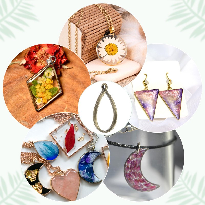 - [Multipurpose Use] - These open-back frame pendants are versatile for resin jewelry making, allowing to embed materials like dried flowers, beads, or others to craft unique and personalized accessories, such as necklaces, earrings, or keychains.