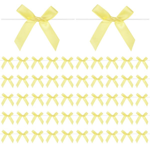 M METERXITY 100-Pack Satin Ribbon Twist Tie Bows, 2.4x2.8 Inch Bow Twist Ties, Satin Ribbon Bows for Craft DIY/Baked Goods/Hair Bow Sewing/Wedding/Birthday/Party [Yellow]
