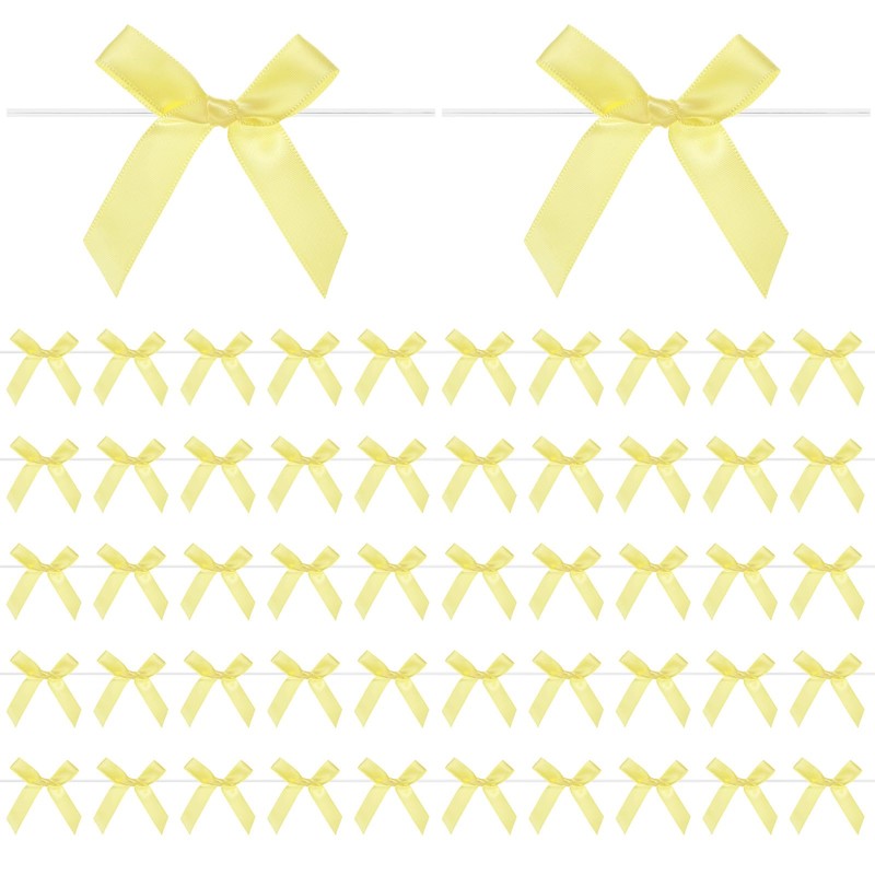 - [Size & Package] - Material: Polyester;Color:Yellow;Overall Size:6x7cm/2.36x2.76 Inch(L*W); Ribbon Width: 1.5cm/0.59 Inch;Package Includes:100-Pack x Ribbon Bows Twist Tie for Baked Goods