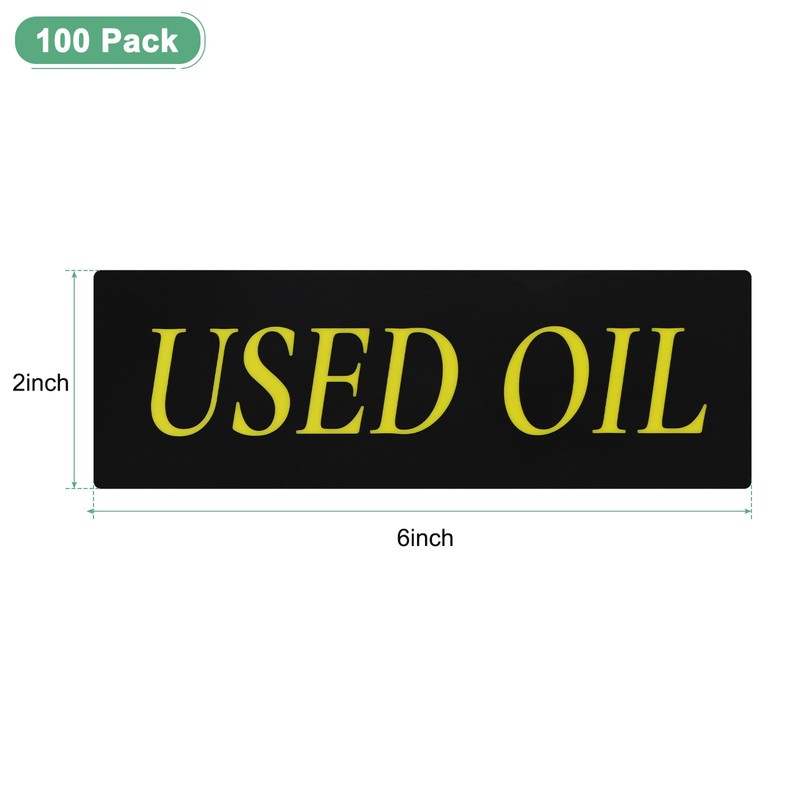 - [Size & Package] - 100-Pack x Practical Waste Oil Sticker;Material: PVC and 3-M Adhesive;Color:Yellow Letters on Black Background;Size: 6x2x0.02 Inch (LxWxH)