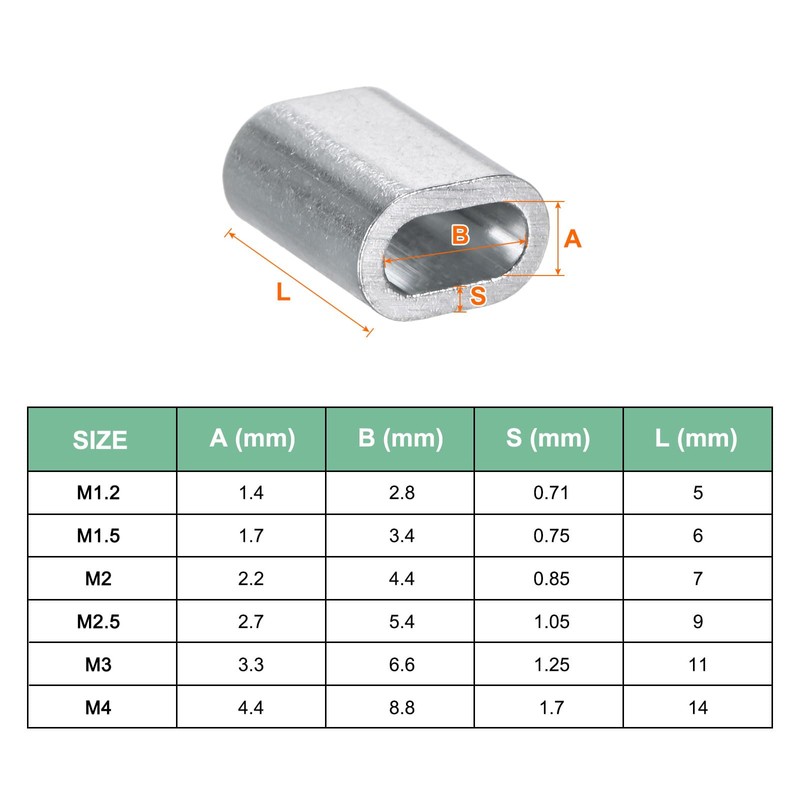 - [Attention] - The diameter of the cable ferrules should be slightly larger than the steel wire rope, as the rope needs to be inserted into the sleeve hole and compressed crimping loop sleeves for a secure fit.