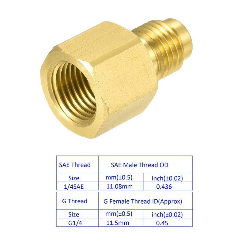 - Package contents: 2 pack of reducer adapters, male thread size: 1/4SAE, female thread size: G1/4, total size: 29 mm x 17 mm / 1.14 inches x 0.67 inches (L x W x H).