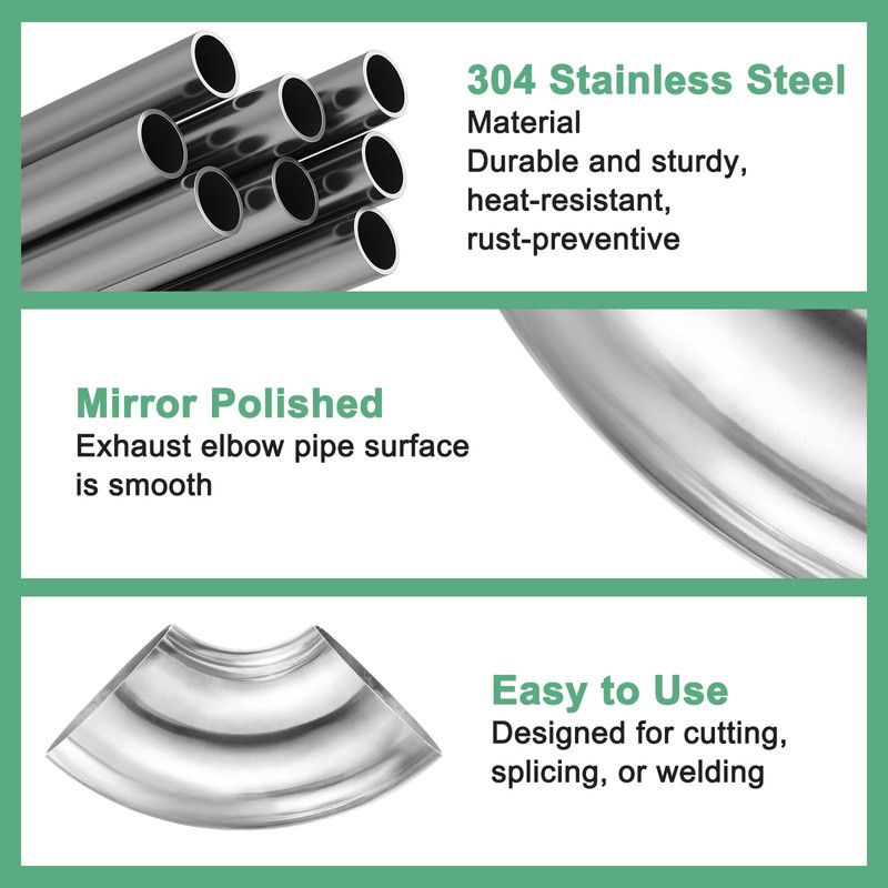 - [Durable Exhaust Elbow Pipe] - Mandrel bend elbow made of 304 Stainless steel, durable and sturdy, has excellent performance in oxidation resistance, heat-resistant, rust-preventive, anti-corrosion, etc. It is mirror polished and has a smooth surface