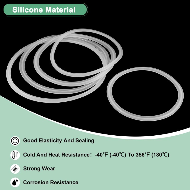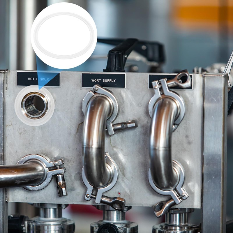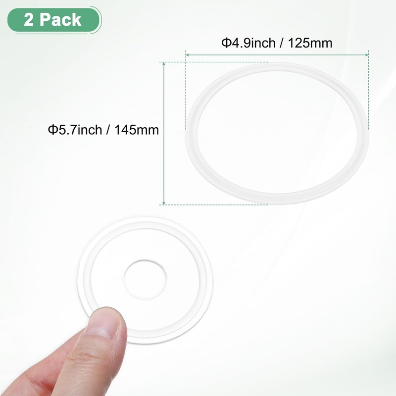 - [Size & Package] - 2-Pack x Silicone Tri-clover O-Rings Gasket; Material: Silicone; Color: White; Working Temperature Range: -40℉ (-40℃) to 356℉ (180℃) ; Inner diameter: 125 mm/4.9 Inch; Outer diameter: 145 mm/5.7 Inch; Thickness: 5 mm/0.2 Inch; apply to Pipe Outer Dia: 145 mm/5.7 Inch; Pipe size: 133 mm/5.24 Inch
