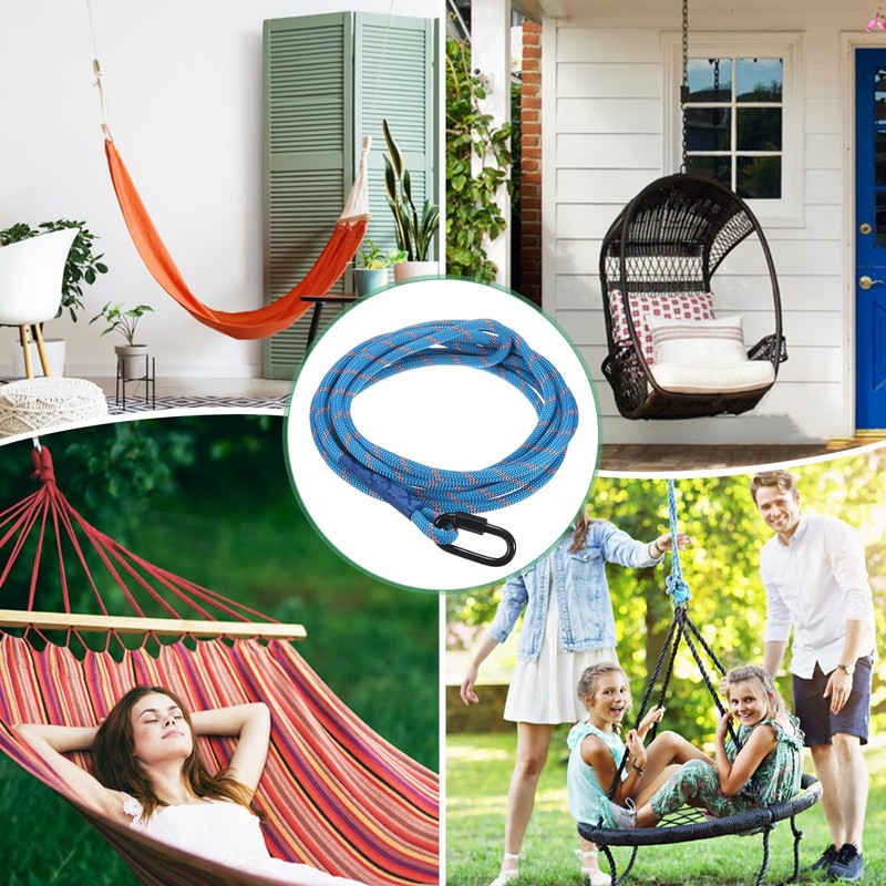 - [Multipurpose Use] - Tree swing ropes are suitable for hanging hammocks, rotating swings, tire swings, classic tree swings, disc swings, aerial flying yoga, hanging rope chairs, etc. They can be used in courtyards, porches, gardens, trees, outdoor playgrounds, yoga rooms, backpacking, beach, outdoor camping