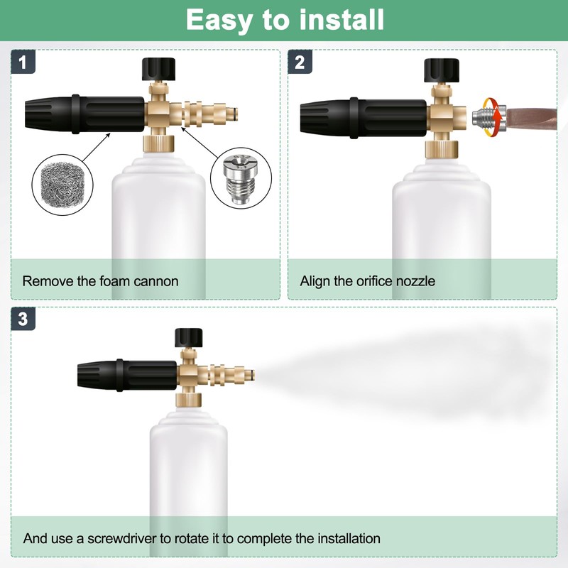 - [Vorteil] - Das einzigartige Design der Schaumdüse kann gleichmäßigen und feinen Schaum oder Sprühnebel erzeugen, wenn es mit dem Schaumsprühwerkzeug ausgestattet ist, wodurch die Reinigungsfähigkeit effektiv verbessert wird