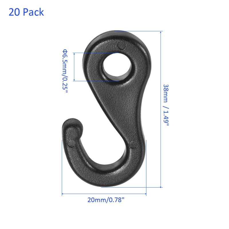 - PACKAGE INCLUDE: 20 Pack of Plastic Snap Clip Hooks, which size is Overall Size: 38mm x 20mm / 1.49"x0.78"(L*W), Hole inner diameter: 6.5mm/0.25".