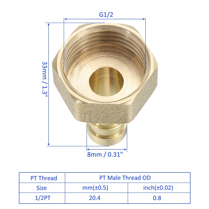 - Package Includes: 2 x Barb Hose Fitting Size is Thread Size: G1/2 Female, Barb Outer Diameter: 8mm, Overall Size: 33mm x 26mm (L * W)