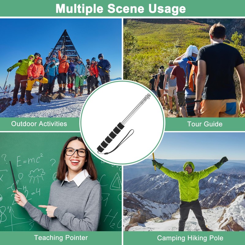 - [Multipurpose Use] - The extendable handheld flag pole is designed for easy outdoor and indoor activities. It can be used as a festival flag pole, guide flag, national flag pole, banner pole, stick, collapsible pole, camping pole, horse training, guide stick, festival pole, teaching pointer stick, etc