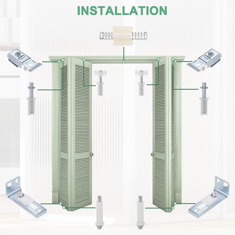 - [Durable Folding Door Hardware Kits] - This folding closet door hardware repair kit is made of stainless steel and plastic, which is durable, sturdy, not easy to break or rust, and has a long service life.