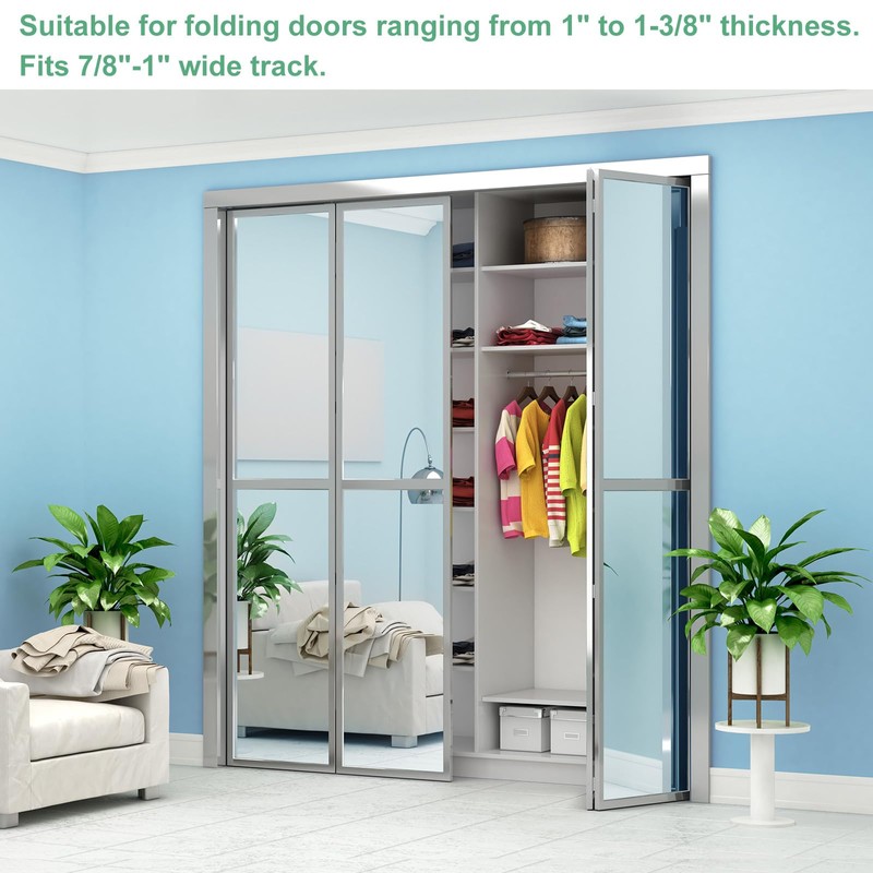 - [Multipurpose Use] - Our folding door hardware is suitable for repairing folding doors, sliding doors, closet doors, lounge doors, bedroom doors, etc. The folding door hardware kit can repair doors weighing up to 50 lbs and with thicknesses ranging from 1" to 1-3/8", suitable for 7/8"-1" wide track. Please refer to the picture for detailed dimensions.