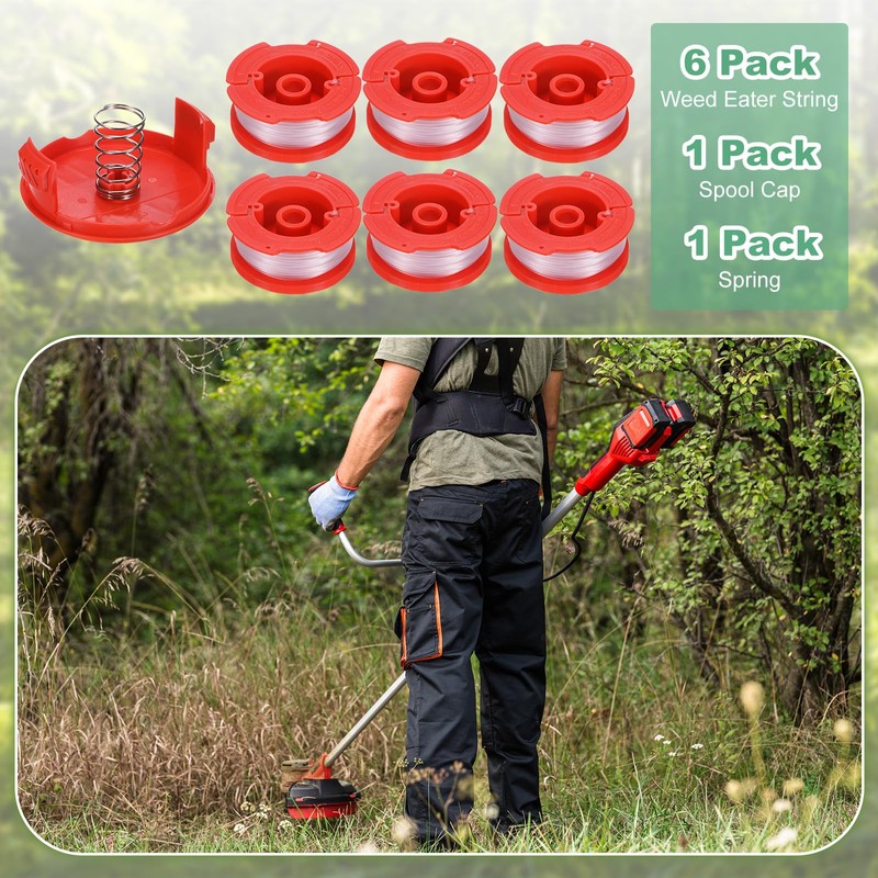 √ Package Include: 6Pcs x Weed Eater String, 1pcs x Spool Cap, 1pcs x Spring