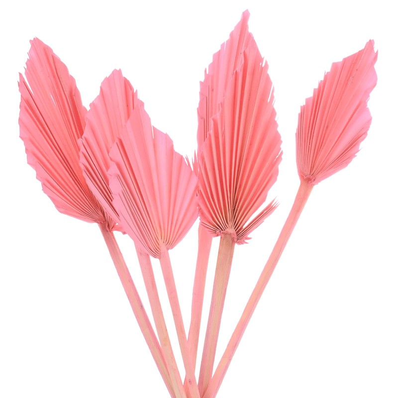 M METERXITY 6-Park Dried Palm Leaves 13.7x3.9 Natural Dried Real Palm Fans Palm Leaves Bulk for Boho Wedding/Home Bouquets Decorations Dried Gold Palm Leaf with Stem [Pink]